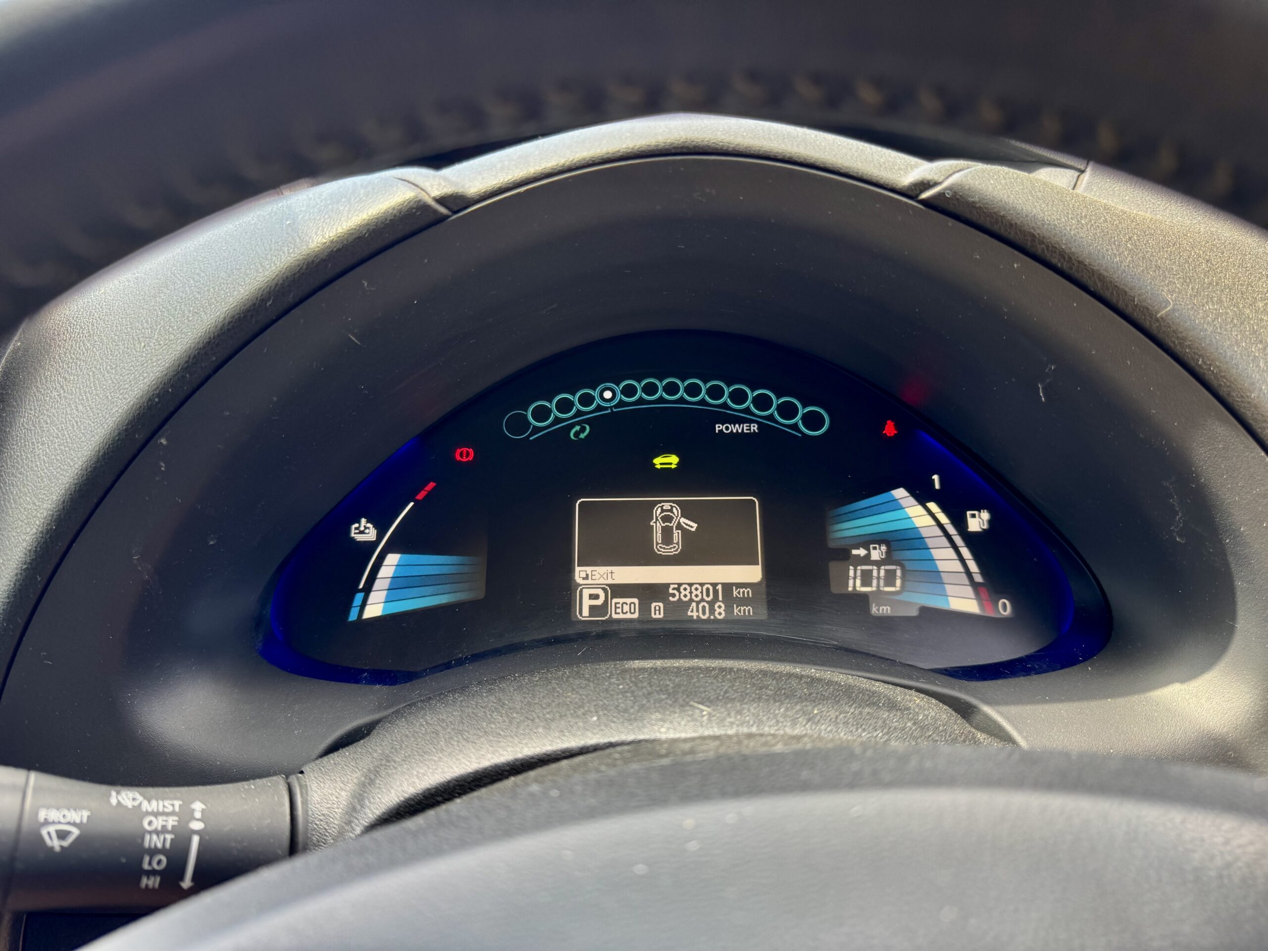 Make no mistake. This is a VERY BLACK Leaf. And it looks great! This car has been used by the Kilowatt family as a general runabout and is a look at me vehicle. Comes with Front and Rear Seat Warmers, Cruise Control, Heated Steering Wheel, Eco, B and Standard Driving Modes, Apple Carplay, Lane Departure warning (I think you’re getting the picture.). A great little car. Battery Health is now at 69% which still gives a great range for a day to day runabout/commuter. Vin:6U90000AZE0213570