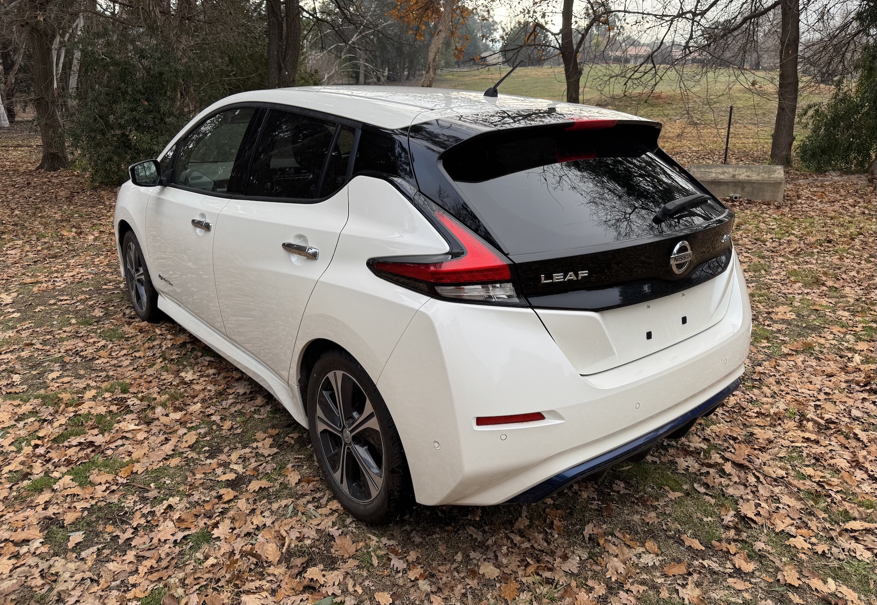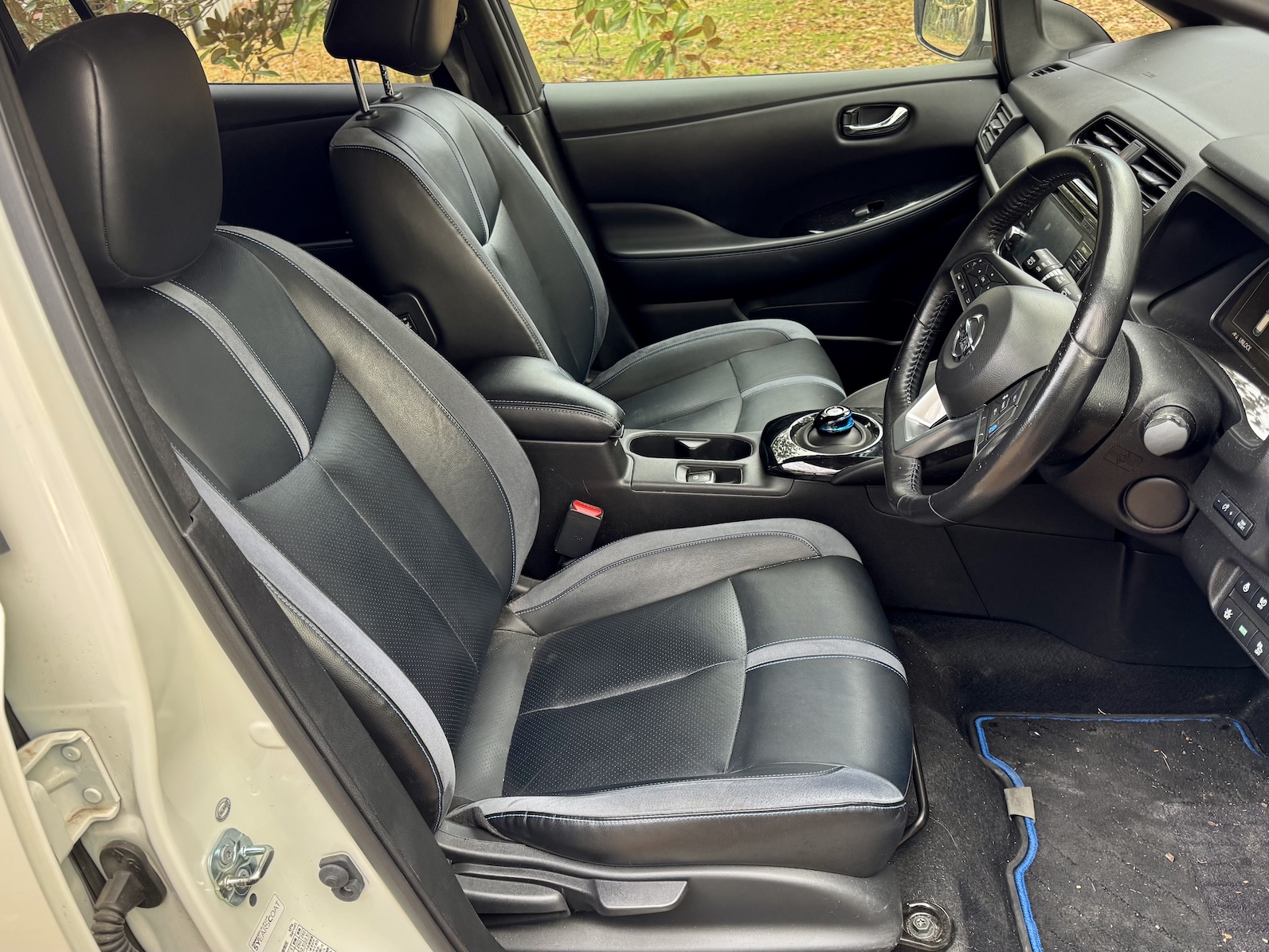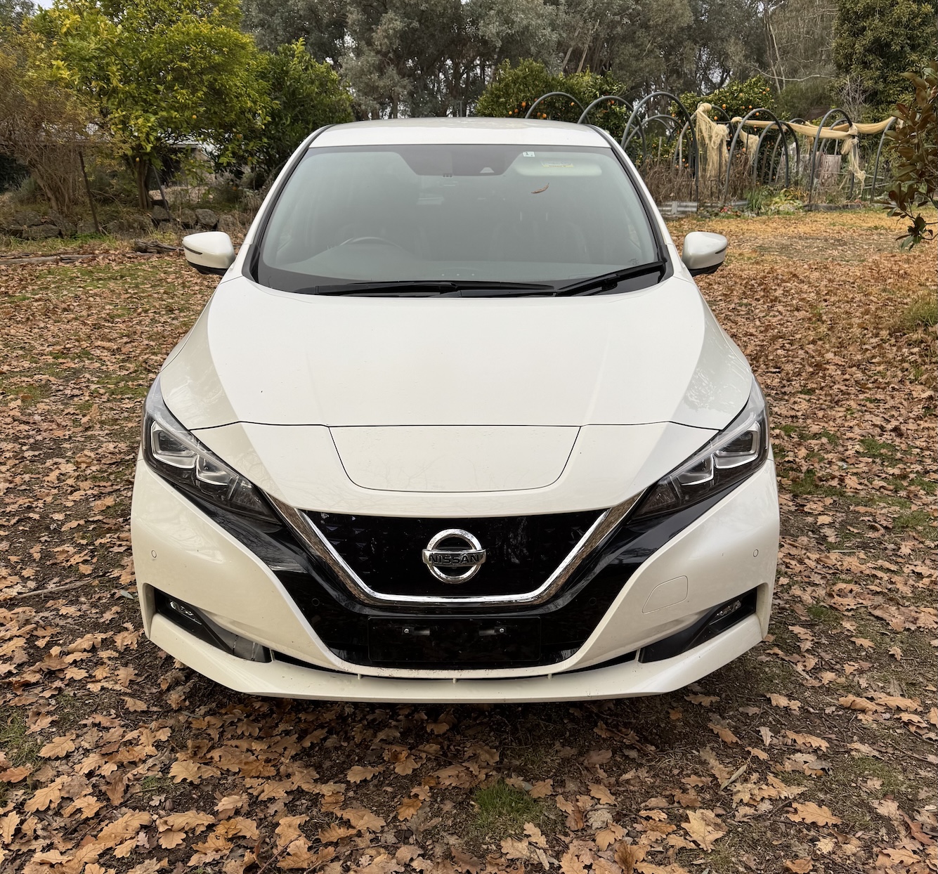 White. Wonderful wonderful White. Perfect for those hot Australian Summers! This Leaf is a “G+” Spec, meaning it is loaded with features. Apple Carplay/Android Auto, 360 Cameras (Boy, do they help take the stress out of parking), Pro Pilot (AdaptiveCruise Control), Heated Front and Rear Seats as well as heated steering wheel (Don’t laugh. Heated steering wheel is so good on those cold winter days), Lane Departure Warning, Car Beside Warning in the rear view mirrors, Factory Bose Sound System, Faux Leather Seats and many other features. This is a Leaf loaded with goodness!! 87% Battery Health is a bonus. We will supply it with a portable 10amp charger.