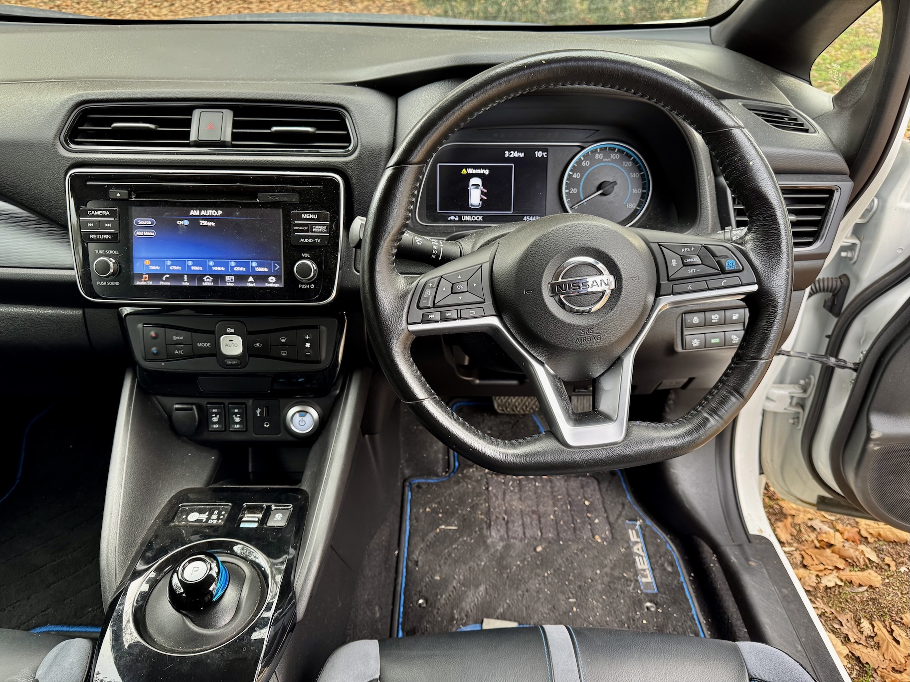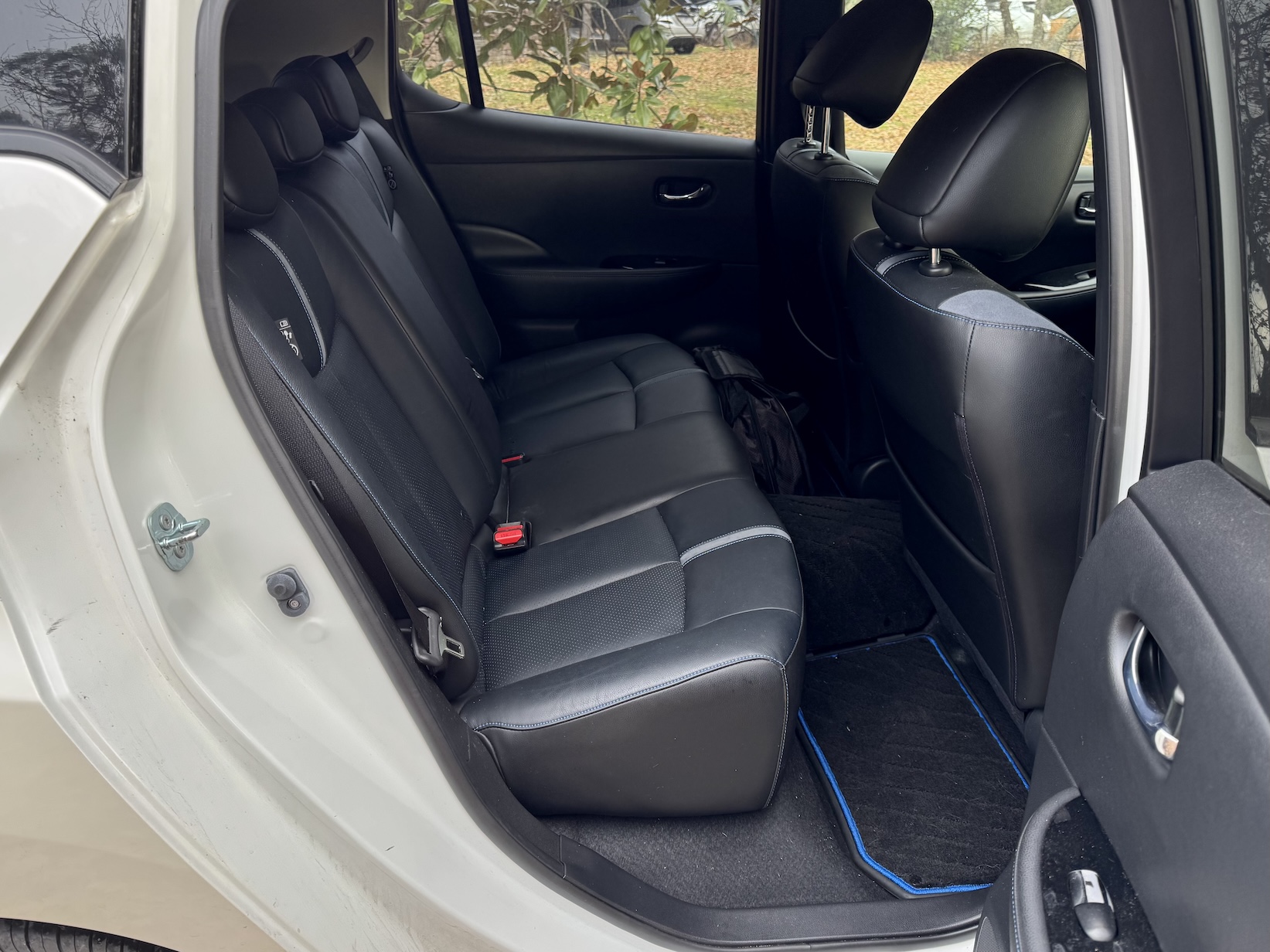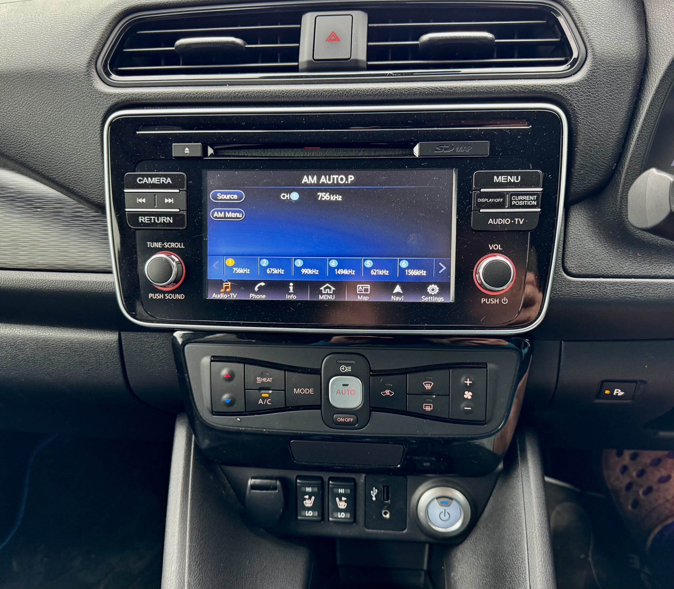 White. Wonderful wonderful White. Perfect for those hot Australian Summers! This Leaf is a “G+” Spec, meaning it is loaded with features. Apple Carplay/Android Auto, 360 Cameras (Boy, do they help take the stress out of parking), Pro Pilot (AdaptiveCruise Control), Heated Front and Rear Seats as well as heated steering wheel (Don’t laugh. Heated steering wheel is so good on those cold winter days), Lane Departure Warning, Car Beside Warning in the rear view mirrors, Factory Bose Sound System, Faux Leather Seats and many other features. This is a Leaf loaded with goodness!! 87% Battery Health is a bonus. We will supply it with a portable 10amp charger.